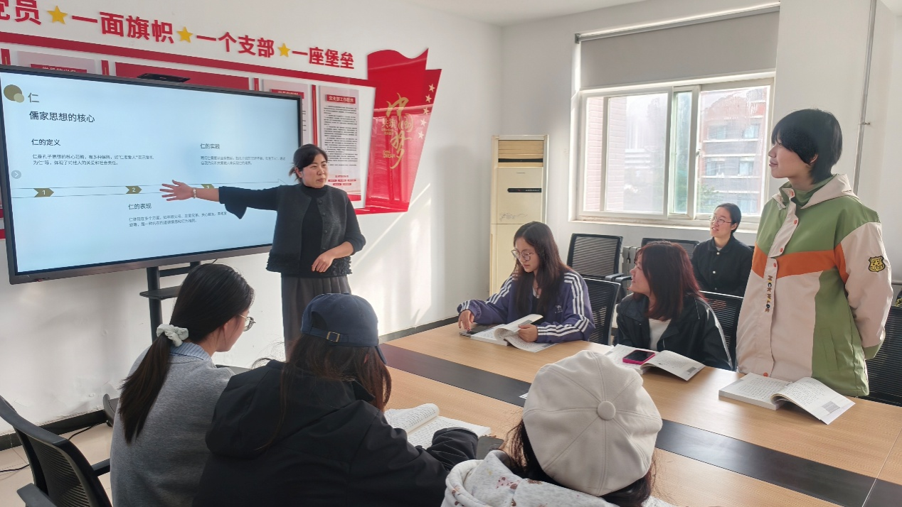 活动伊始,正蒙导师杜毅茹老师引导同学从“传承经典、涵养品格”入手,针对“如何与室友相处”,她引用《论语》中的“礼之用,和为贵”;“治学组”聚焦于《学而》《为政》篇,解读了“学而时习之”“温故而知新”;“处世组”围绕《里仁》篇,剖析了“己所不欲,勿施于人”“君子和而不同”;“修身组”结合《公冶长》篇,分析了“吾日三省吾身”;“宿舍值日如何体现‘克己复礼’”,将其与大学的学习和生活相融合。现场同学们踊跃发言,有的结合自身经历分享了在宿舍集体生活中互相包容、主动承担责任的小故事,有的从传统文化角度探讨了“克己”对个人修养提升的重要性,还有的联系书院“正蒙”理念,提出将经典中的处世智慧转化为日常行为准则的具体做法。讨论过程中,不同观点相互碰撞,同学们在交流中深化了对《论语》思想的理解,也逐渐明晰了如何在实际生活中践行这些古老的智慧,让经典不再是书本上的文字,而是成为指导言行的生动指南,进一步明确了自我修养与为学之路的方向。最后,老师提炼核心观点,引导将《论语》智慧落地,在结束前集体齐读经典名句收尾。