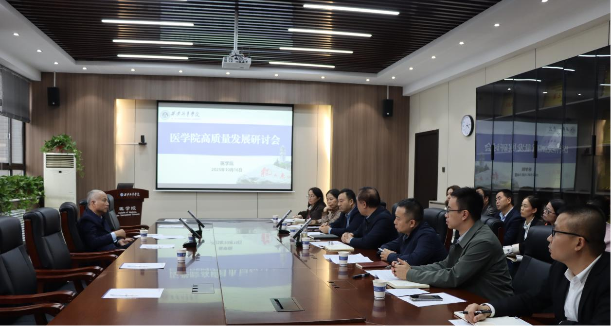 10月16日下午,医学院高质量发展研讨会在学院会议室召开,学校理事长、校长黄藤教授出席会议并发表重要讲话,医学院领导班子、各系部主任及博士教师代表参加了会议。