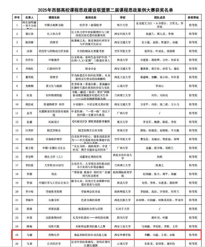 热烈祝贺我院马丽、白银、李妮三位教师在2025年西部高校课程思政建设联盟第二届课程思政案例大赛中分别荣获特等奖、二等奖!