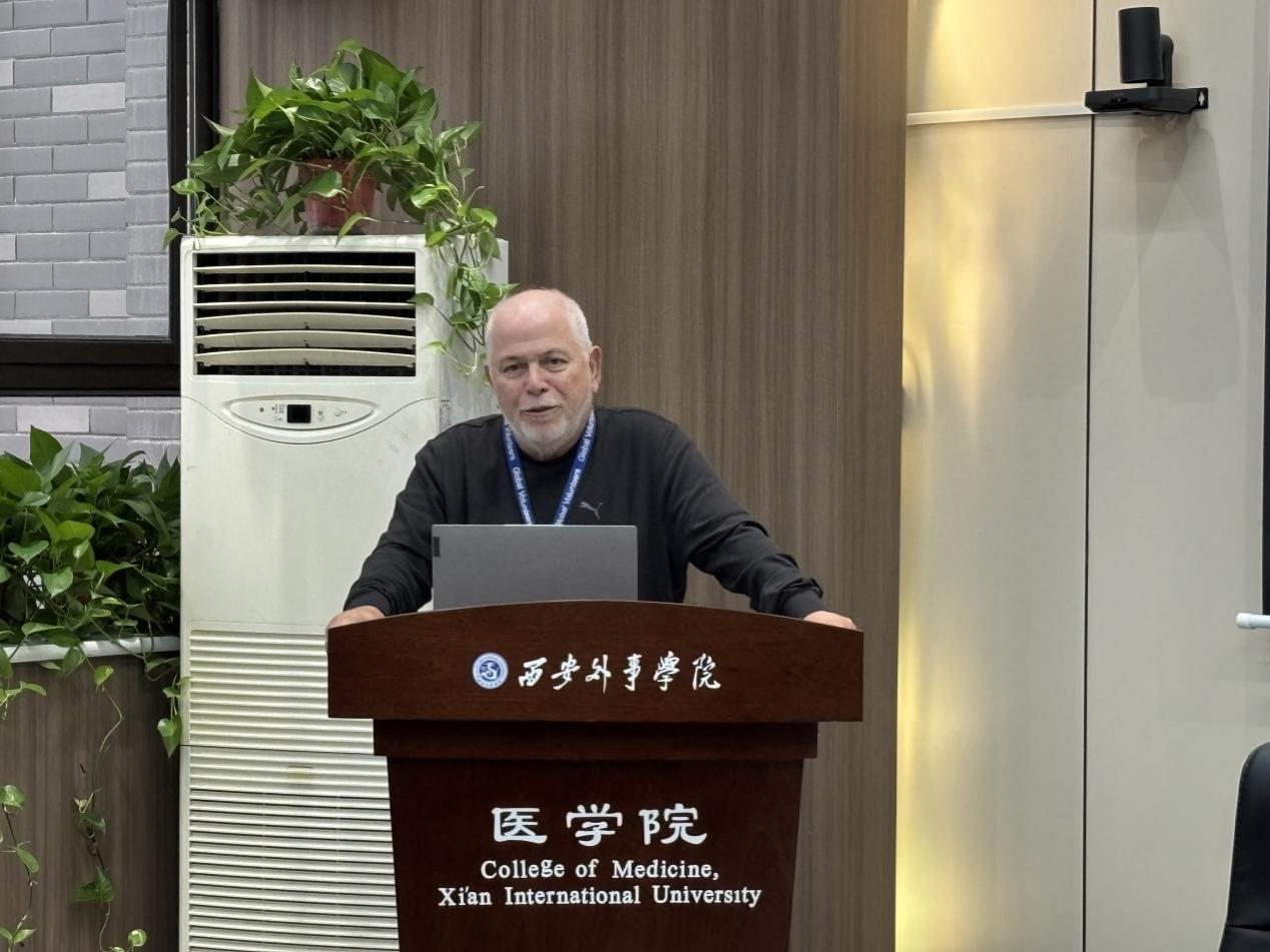 2025年10月14日下午,西安外事学院医学院202报告厅气氛热烈,一场聚焦现代与传统药学交流的学术盛宴在此精彩上演。此次活动特别邀请了来自美国的两位知名教授—爱德华多(Eduardo)教授和莱奥诺拉(Leonora)教授,旨在增进中美药学领域师生的相互了解,推动药学专业知识在国际间的深度交流。