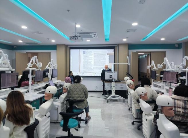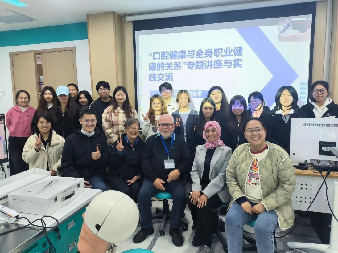 2025年10月20日下午,一场主题为“口腔健康与全身职业健康的关系”的专题讲座在我院口腔医学技术系仿头模实训室成功举行。本次讲座特邀外籍学者Leonora Aenlle女士与Eduardo Aenlle先生担任主讲嘉宾。口腔系全体教师及20名高职、本科学生代表齐聚一堂,共同参与了这场跨学科的知识盛宴。