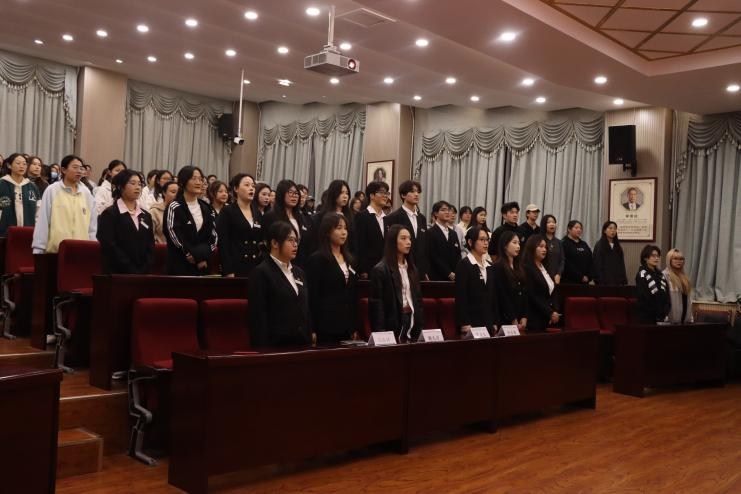 胡超、马一丹、卢宇珠、李涵四名新生依次上台分享了自己开学至今的志愿经历以及对所在部门的印象,并表示在未来的工作中将会扬帆激浪,砥新致远。
