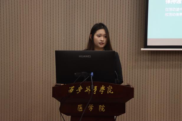 医学院阳光志愿者协会会长夏安玉、副会长刘言惜依次登台发言。她们系统介绍了协会的整体架构与发展历程,细致讲解了志愿者带队流程,向新加入的成员致以诚挚且热烈的欢迎,同时着重强调了志愿活动的各项核心规则,为新生们清晰勾勒出协会的运行模式与志愿工作的开展准则。