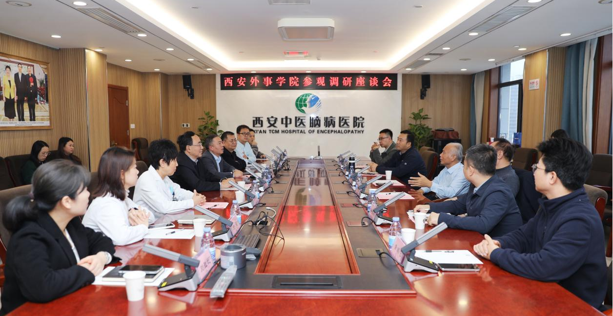 为深化医教协同育人机制,推动产学研深度融合,10月28日下午,西安外事学院理事长、校长黄藤带领医学院院长杨帆及学院领导班子一行,前往西安中医脑病医院开展考察调研。西安中医脑病医院院长宋虎杰及相关医院领导陪同参观医院,随后双方就共建“西安外事学院附属西安中医脑病医院”的战略合作事宜展开座谈交流,并达成突破性共识。